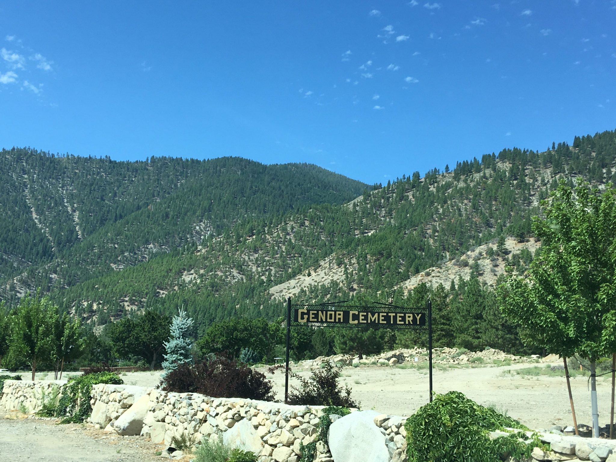 村の中心からメインストリートを北へ5分ほど行くと、広大でなんとも開放感溢れる墓地があります。上述のジョン・”スノーシュー”・トンプソンもここに埋葬されてます。ジュノアの先人達はシエラ山脈の麓の自然の中で永眠されてるんですね。